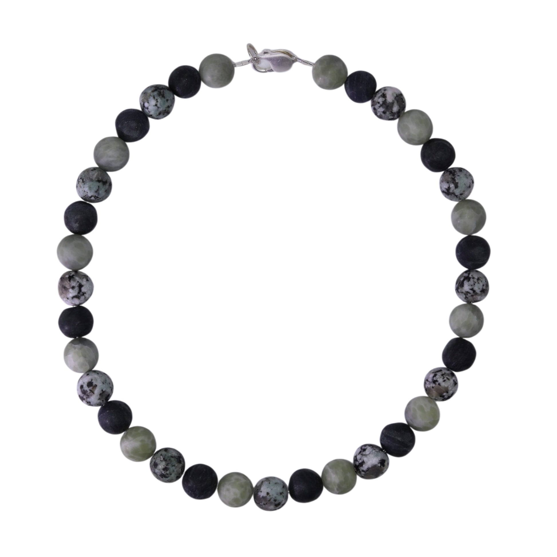 Collana in giada-nefrite, pietra di lago e serpentino